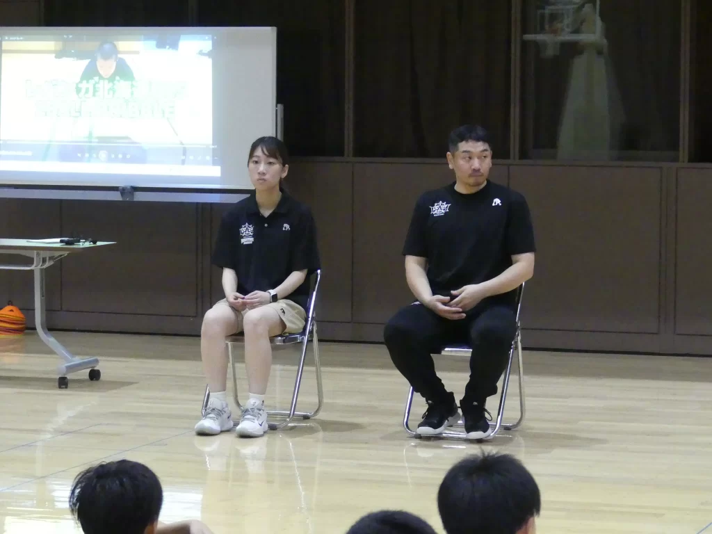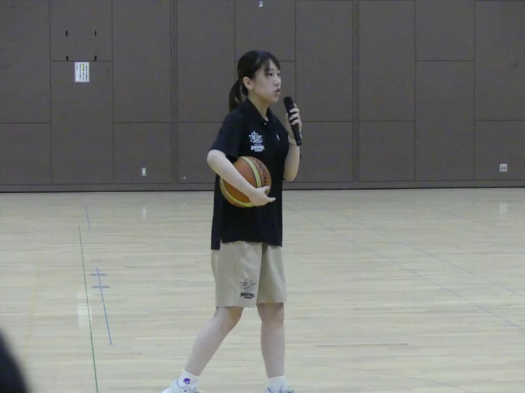 株式会社ペイロールの協力のもと、株式会社レバンガ北海道アカデミーの安宅寛法コーチと加藤あか里コーチを講師に迎え、個人スキルアップ、1対1、ドリブル、フェイントなどの指導が行われました。